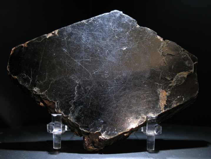 A nice crystal of biotite. Biotite is another mica, and has the same general properties of muscovite, flaky, flexable, and seperates into sheets. Crystal measures 3 and 1/2 inches long.