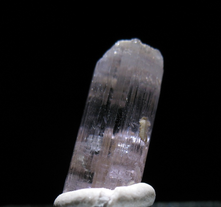 Nice, light purple scapolite crystal. Scapolite is slightly denser than one would expect, for being a non metallic mineral. Measures approximately 3/4ths of an inch high.