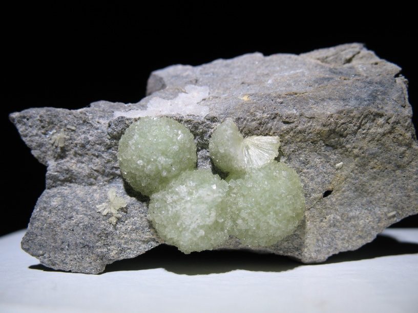 Lime green radiating crystals of wavellite on matrix. Each crystal is about 1/3rd of an inch wide. This sample comes from magnet cove in Arkansas.