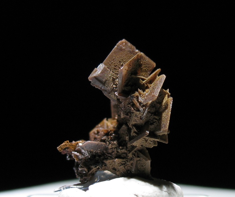 A small tabular group of wulfenite crystals. The whole sample is about 1/2 an inch tall.