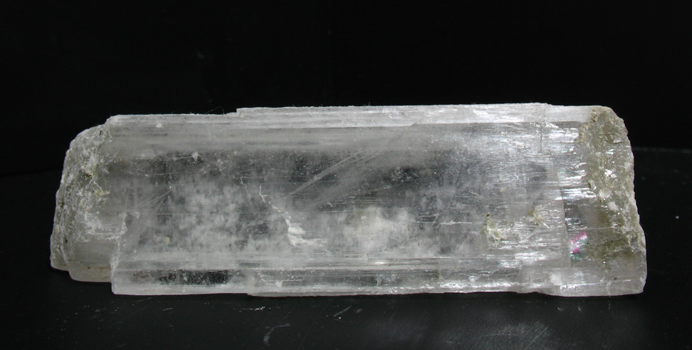 A nice sized transparent crystal of kernite. This is an example of a crystal with very strong cleavage, when picked at with a knife, it will break off into fine, needle like shards parallel to the length of the crystal. This sample is 3 inches long.