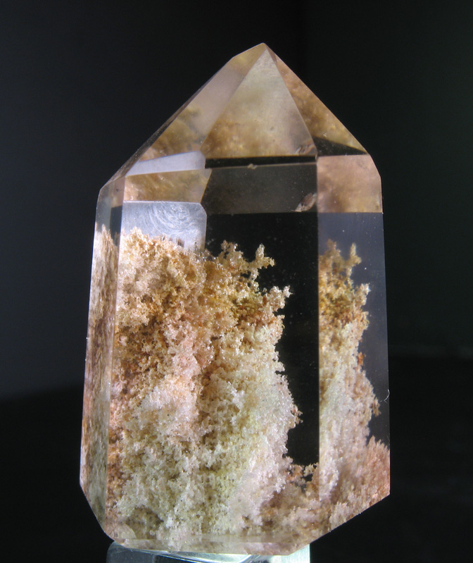 This quartz crystal has been polished, however, the natural faces have been left in tact. The polishing really brings out the beautiful chalcedony intergrowths within, and almost makes the crystal look scenic, hence the name. This crystal measures about an inch tall.