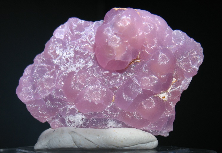 Purplish pink variety of microcrystaline mineral smithsonite, displaying prominant botryodal habit this mineral is known for. Due to the zinc content of smithsonite, it is very easy to identify as it is much heavier than expected. This sample measures about an inch long.